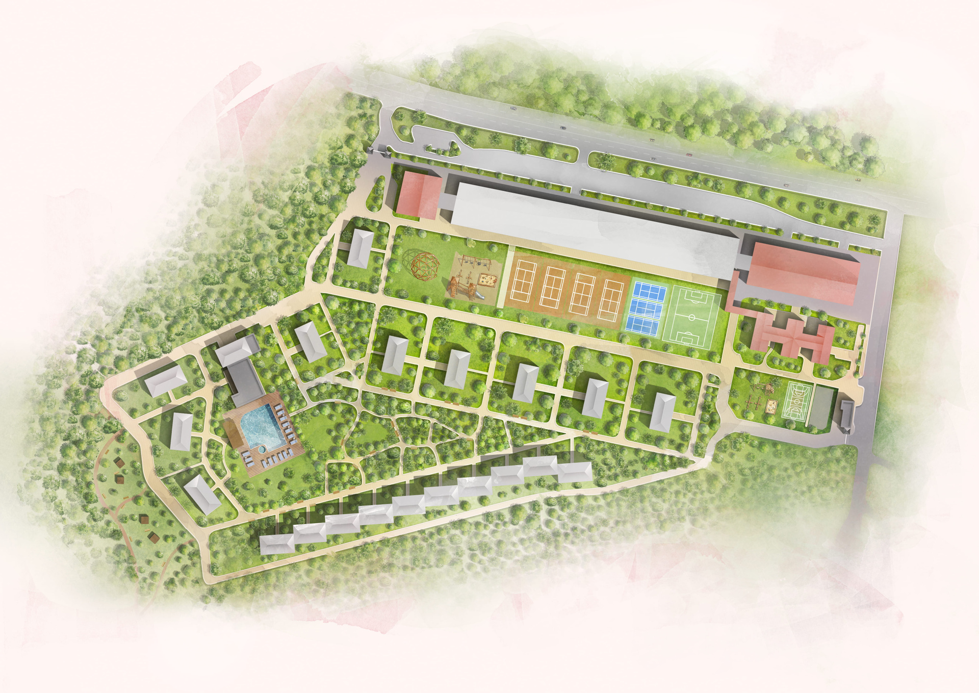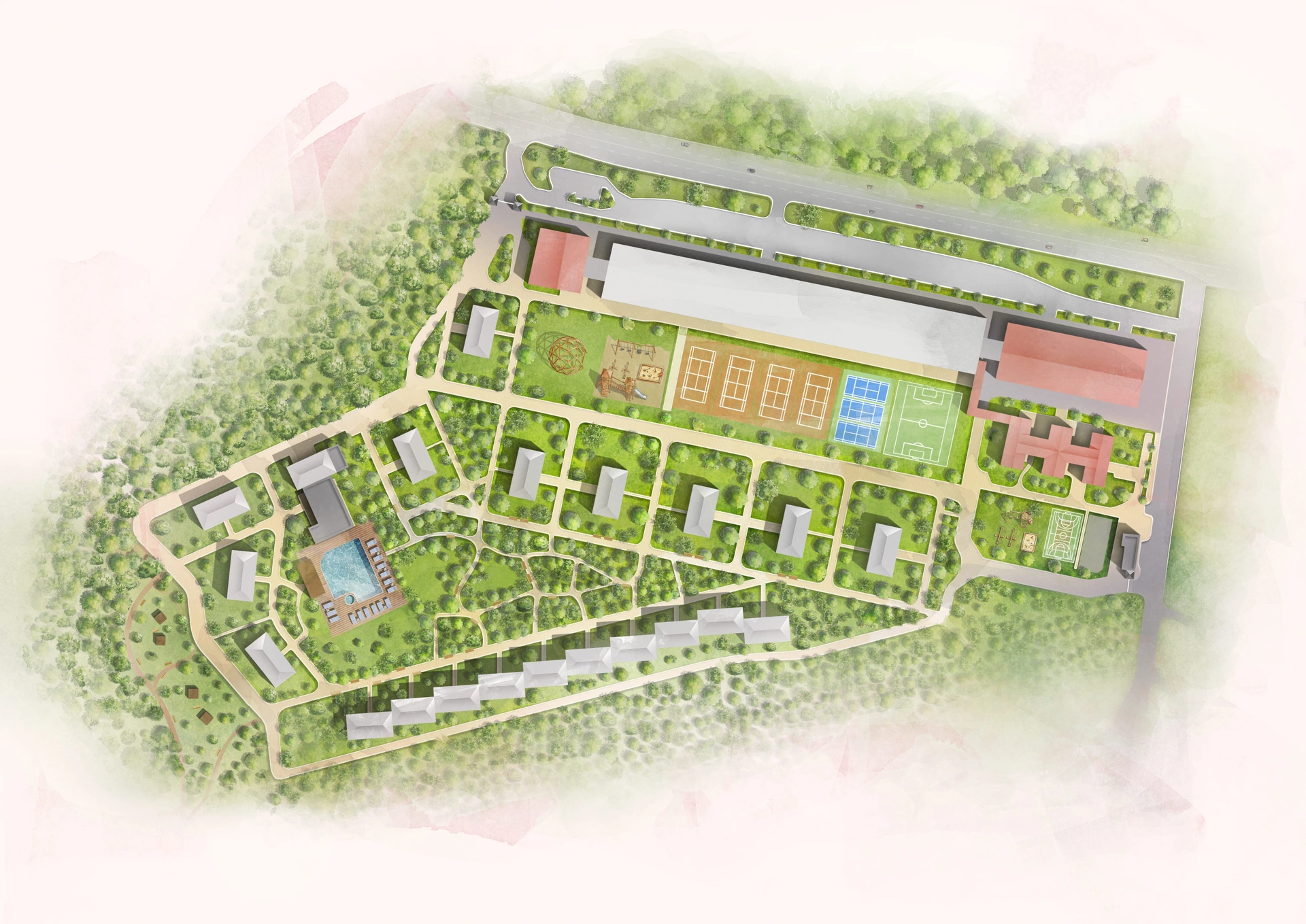 На закрытой охраняемой территории введены в эксплуатацию более 30 объектов инфраструктуры для детей и взрослых.